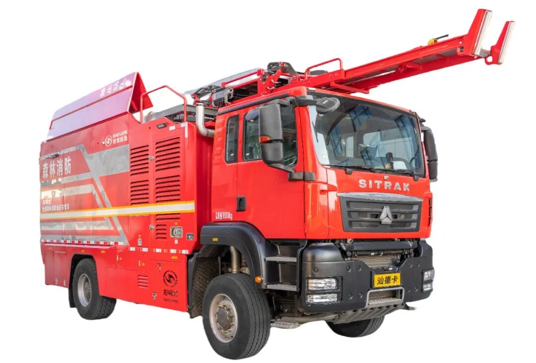 “龙吸水”举高喷射消防车,是侨龙最新研发的一款具有消防炮灭火、中继加压远程供水、辅助吊拉、夜间作业照明和器材运输功能于一体的灭火装备。